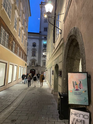 Salzburg. Sigmund-Haffner-Gasse. Menschen gehen vorbei. Es ist kalt. Die Dunkelheit wölbt sich hoch oben über der Stadt, wie eine Schneekugel, strahlend im Schein von Laternen und Schaufenstern.